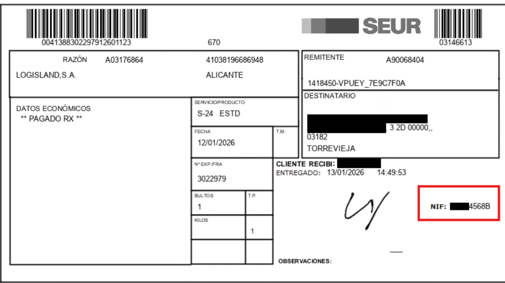 Una vez que el transportista marca el pedido como entregado en el albarán o en el sistema de seguimiento, la entrega se considerará realizada correctamente siempre que los datos de recepción coincidan con los facilitados por el cliente.