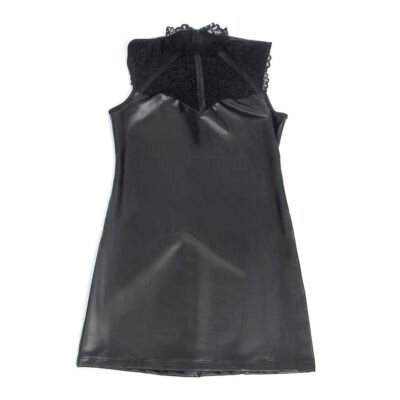 Disponible SUBBLIME – 957544 VESTIDO DE CUERO CON CUELLO DE ENCAJE NEGRO S/M