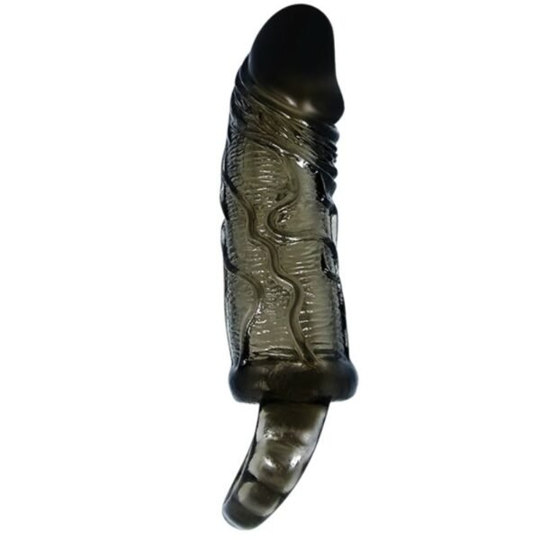 Funda extensora de pene con strap para los testiculos para que aumente tanto en grosor como en longitud y así aumentar el placer de ambos durante las relaciones. Tiene un diseño realístico y funcional ya que los relieves de los contornos sirve como estimulante para tu pareja y está fabricado en TPR de alta calidad.