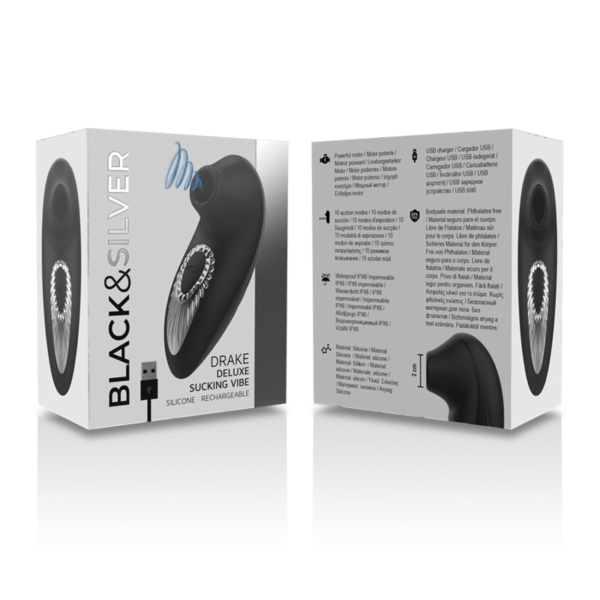 BLACK&SILVER – DRAKE DELUXE SUCKING VIBE SILICONA RECARGABLE NEGRO