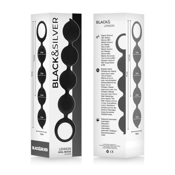 Black&Silver™ Lennon Beads™ perfectas para los juegos sensuales de la puerta trasera: Las bolas anales vienen en un juego de estructura variada y una superficie suave hecha de silicona. Con 5 elementos, las Black&Silver™ Lennon Beads™ son el acompañante ideal para el entrenamiento anal.