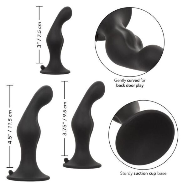brate a un mundo de placer anal emocionante con el kit de ondulación anal de silicona. Disfrute del placer de la rodilla con el conjunto de 3 tamaños graduados de enchufes anal suavemente curvos con bases de taza de succión. Aumente suavemente su placer con el diseño naturalmente curvo hecho para golpear todos los puntos correctos y mantener las cosas cómodas durante el tiempo de juego. Cada sonda en nuestro kit aumenta gradualmente en longitud y circunferencia para un excelente placer en cualquier nivel de juego de placer. Si bien cada aumento de su entrenamiento expande sus horizontes, use la conveniente base de succión para la estimulación humeante, la inserción sin esfuerzo y la eliminación suave. Las sondas flexibles están hechas de una silicona de acabado satén suave y prácticamente sin costuras. Este material seguro para el cuerpo no tiene perfume y no tiene ftalato para mantener sus puntos más sensibles felices y saludables. /li>