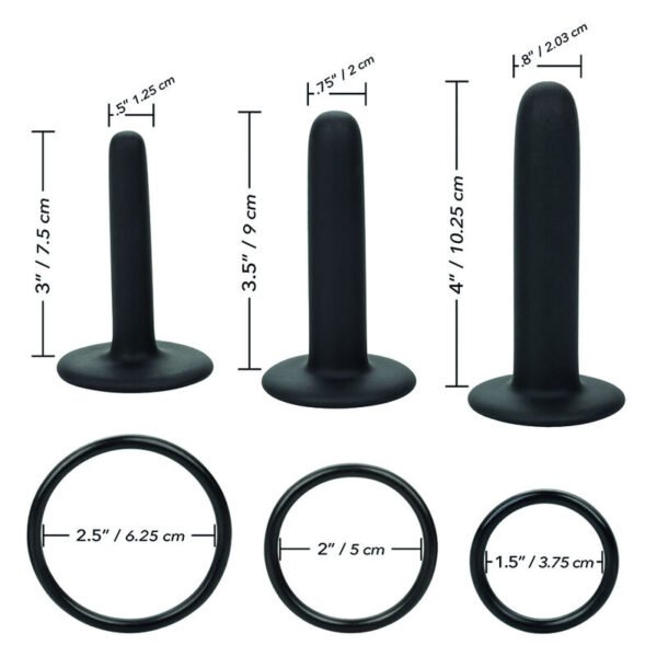 - Dimensiones: 3,75 cm diámetro – anillo pequeño | 5 cm diámetro – anillo mediano | 6,25 cm diámetro – anillo grande | 7,5 x 1,25 cm sonda pequeña | 9 x 2 cm sonda mediana | 10,25 x 2,03 cm sonda grande | El arnés totalmente ajustable se adapta a una distancia de hasta 145 cm