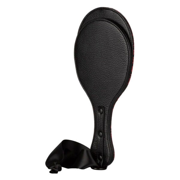 Para las noches en las que te sientas especialmente traviesa, disfruta de los placenteros toques de la Pala Doble Redonda Scandal®. Dale a tu sumiso suaves toques con la suave pala de doble capa y su resistente mango. El castigo y el placer se combinan a la perfección con esta pala doble, con un interior de polipiel vanguardista y un exterior de brocado sedoso. Tu sumiso disfrutará de cada azote intenso de esta resistente pala de doble costura y obedecerá todas tus órdenes mientras la pala doble proporciona potentes palmadas. Esta suave pala está diseñada tanto para principiantes como para amantes del sexo experimentados, para que prueben suaves toques y disfruten de las impresionantes palmadas que anhelan los fetichistas más experimentados. Libera tus deseos más atrevidos y disfruta de una noche de placer sin límites.