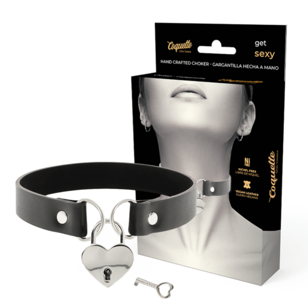 COQUETTE CHIC DESIRE – COLLAR CUERO VEGANO ACCESORIO CORAZÓN CON LLAVE