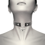 Este collar fetiche es una pieza exclusiva de cuero vegano para complementar como accesorio a tu vestuario.