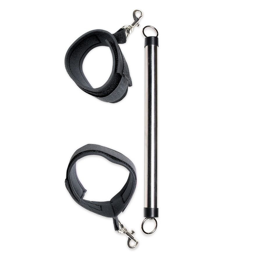 Coloca los puños ajustables a los tobillos y el sujeto no será capaz de cerrar sus muslos. Probad nuevas posiciones y escenarios en los que nunca os atrevisteis y hacedlo todo con esta barra.