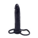 Disfruta el doble y diviértete el doble.. Con este anillo con pene, dos es mejor que uno! El anillo de silicona en la parte superior del pene actúa como un anillo para mejorar el rendimiento, mientras que el anillo inferior más grande que rodea los testículos intensifica sus orgasmos.