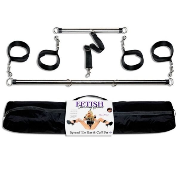 Este set de barras espaciadoras con esposas tanto para muñecas como para tobillos, impedirá que pueda cerrar sus muslos o brazos. Intenta posiciones y situaciones a los que nunca te has atrevido y que ahora ya serán mas fáciles y podrás cumplir.