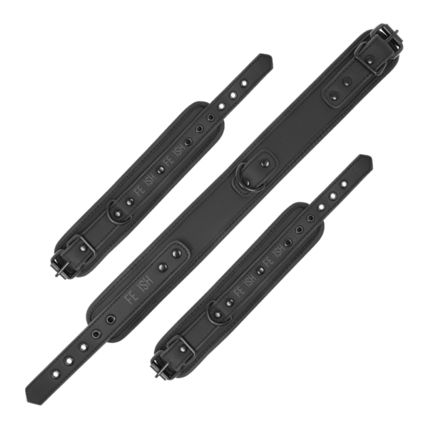 FETISH SUBMISSIVE – COLLAR Y ESPOSAS CUERO VEGANO CON FORRO DE NEOPRENO