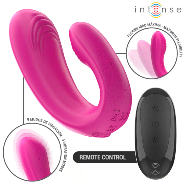 INTENSE – JANET ESTIMULADOR Y VIBRADOR DUAL EN FORMA DE U CON CONTROL REMOTO ROSA