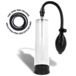 Intense Penis Pump ayuda a alcanzar la erección de una forma más sencilla utilizando un sistema de vacío que hace que la sangre se concentre en el pene cuando todavía está flácido. La erección se alcanza y mantiene mediante un sellado cómodo y hermético en la base del cuerpo, justo en la unión del pene con el pubis, gracias al cual se mantiene la sangre en el tronco. Gracias a la manga, el sellado es firme, cómodo y estrecho sin apretar.