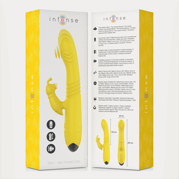INTENSE – TOKY VIBRADOR MULTIFUNCIÓN RECARGABLE UP & DOWN CON ESTIMULADOR DE CLITORIS AMARILLO