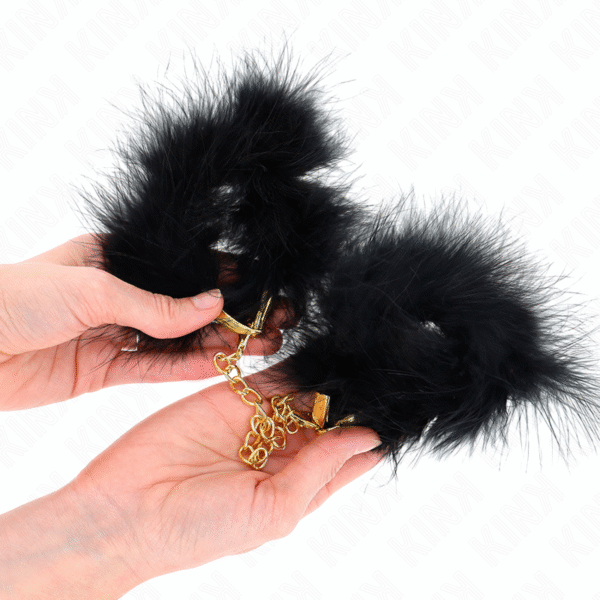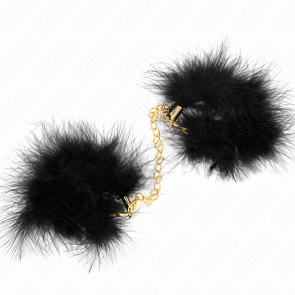 KINK – ESPOSAS DE PLUMAS NEGRO CON CADENA DORADA MODELO 2