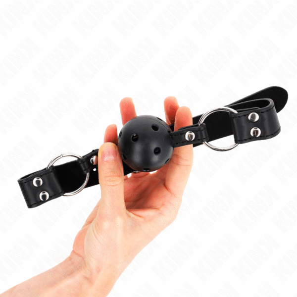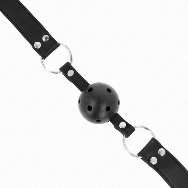 KINK – MORDAZA DE BOLA 4 CM TRANSPIRABLE CON DOBLE REMACHE MODELO 1 NEGRO 62 x 2.5 CM AJUSTABLE 42-58 CM