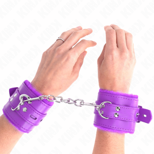 KINK – MUÑEQUERAS FORRADAS CON AGUJEROS CUADRADOS VIOLETA Y CORREA VIOLETA AJUSTABLE 17-29 CM X 6 CM