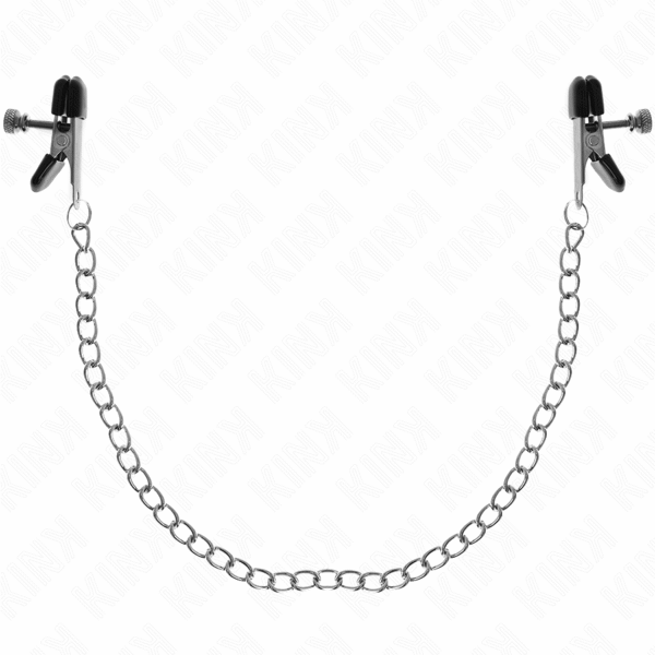 KINK – PINZAS PARA PEZONES PLANAS NEGRO CON CADENA PLATEADO 34 CM