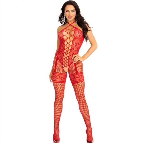 LEG AVENUE – BODYSTOCKING CUELLO HALTER RED CORAZONES ROJO