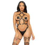 LEG AVENUE – KINK TEDDY ARNÉS CON ARO DE CORAZÓN TALLA S – NEGRO