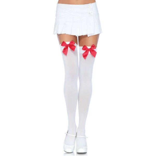 LEG AVENUE – MEDIAS NYLON BLANCO Y LAZO ROJO