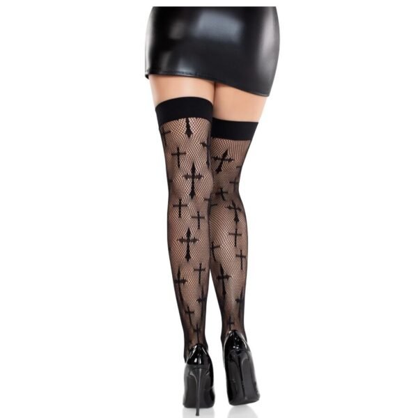 Atrévete con las medias Worship Me Cross Net Thigh Highs, diseñadas para quienes adoran mezclar misterio y seducción. Estas llamativas medias musleras presentan un intrincado diseño de rejilla adornado con cruces góticas, creando una estética atrevida pero elegante que llama la atención.