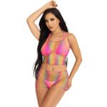 LEG AVENUE – SET TOP & PANTALON REJILLA MULTICOLOR