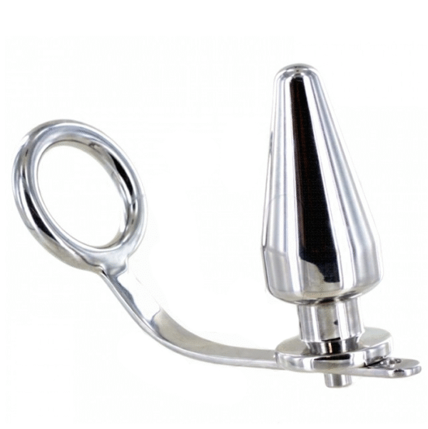 Consiste en un aro de acero quirúrgico del que sale una barra con una bola en el extremo. EL plug es para colocarlo en el ano. Utiliza un poco de lubricante para introducirlo.