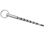 Dilatador de uretra hasta 7mm con bolitas y punta curvada, fabricado en una sola pieza de acero inoxidable.
