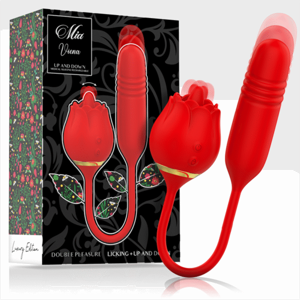 ¡Sube a la cima! The MIA DOOBLE PLEASURE LICKING: el vibrador en forma de rosa con una punta muy traviesa que maneja todos los picos de. Con la punta redondeada del estimulador 100% en silicona, las vibraciones circulantes y un total de 10 combinaciones de vibraciones, mima todas tus zonas erógenas como el clítoris, los labios o los pezones, ¡puedes hacerlo sobre la marcha! De esta manera, el vibrador de punta también se puede transportar discretamente cuando viaja y siempre lo deleita con su absoluta versatilidad.