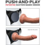 ¡Presiona y juega! Simplemente presiona la ventosa de tu dildo o vibrador favorito contra el muelle de succión cóncavo hasta que TODO el aire entre ellos sea liberado. ¡La succión crea una unión super fuerte sin necesidad de anillos o broches!