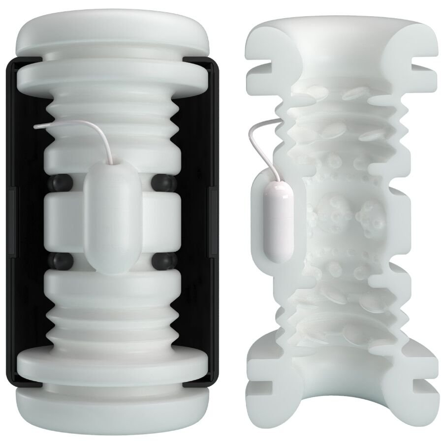 Disfruta de un placer profundo y satisfactorio con esta copa masturbadora con vibración de varias velocidades. Este fantástico juguete masculino te brindará una experiencia mucho más de lo habitual, debido a su exclusivo diseño de sujeción, las copas de ambos lados se pueden apretar manualmente para un mayor placer. Y los puntos de entrada ultra realistas más las mangas internas acanaladas y estriadas hacen que la experiencia de penetración sea perfecta, mientras que el diseño de vibración de varias velocidades te brinda las máximas sensaciones. Disfruta del canal interior texturizado hasta alcanzar una intensa liberación orgásmica.