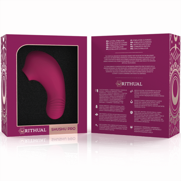 El estimulador de clítoris SHUSHU PRO es la evolución de la exitosa SHUSHU, perteneciente a la reconocida marca RITHUAL. Este vibrador, de un elegante tono orquídea, ha sido diseñado con un enfoque absoluto en la satisfacción y el placer de quienes lo utilizan. Sus dimensiones, con una altura de 11 cm y un ancho de 4.5 cm, lo convierten en un compañero de placer compacto y manejable.