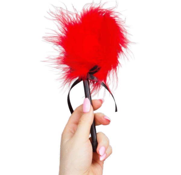 Deja que un cosquilleo recorra todo tu cuerpo con este delicado plumero de marabú rojo.