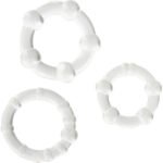 kit de tres anillas de silicona de diferente tamaño, que se adaptan a cualquier tamaño de pene, con los que conseguirás que tu erección sea mucho más duradera, ya que los anillos permiten retardar la eyaculación y mantener tu pene erecto mucho más tiempo.
