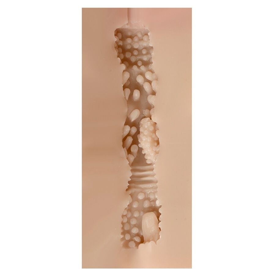 - Textura interna ultrasensorial: El canal interno está diseñado con diferentes texturas, como estrías, nódulos y puntos de presión, que aumentan la fricción y la estimulación en cada movimiento. Dependiendo del modelo, algunas versiones cuentan con cámaras de succión que intensifican la sensación de succión natural.