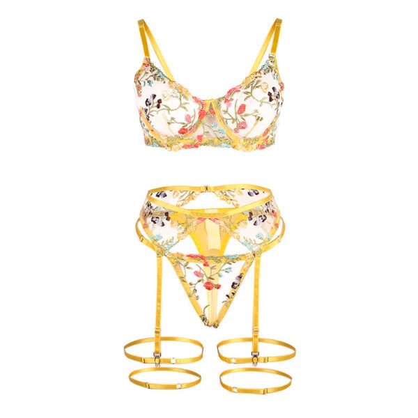 SUBBLIME – 954345 SUJETADOR + TANGA + LIGUEROS DISEÑO FLORAL AMARILLO S/M