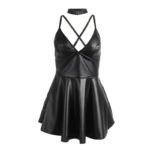 Fabricado con materiales de alta calidad (95% poliéster y 5% elastano/spandex), esta prenda asegura un ajuste cómodo y flexible que se adapta a las curvas de tu cuerpo de manera favorecedora. El acabado en cuero PU aporta un brillo lujoso que realza su carácter provocador, mientras que los tirantes ajustables permiten una personalización perfecta para mayor comodidad.