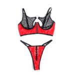 Deja huella con el Conjunto de Lencería Rojo de Cuero Sintético Brillante, Malla y Cremallera de SUBBLIME. Este set está diseñado para mujeres que quieren destacar con un estilo atrevido y sensual, combinando la audacia del cuero sintético patentado con la ligereza y transparencia seductora de la malla.