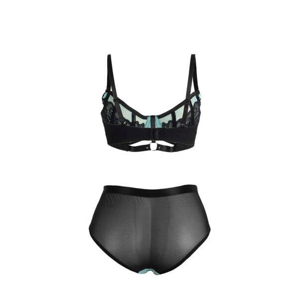 Confeccionado con una mezcla de 95% poliéster y 5% elastano/spandex, este conjunto garantiza un ajuste cómodo y flexible que se adapta perfectamente a tu cuerpo. El sujetador push-up está diseñado para proporcionar soporte adicional y realzar tu escote de manera favorecedora, mientras que los detalles de encaje floral y paneles de malla translúcida añaden un toque de seducción y elegancia.