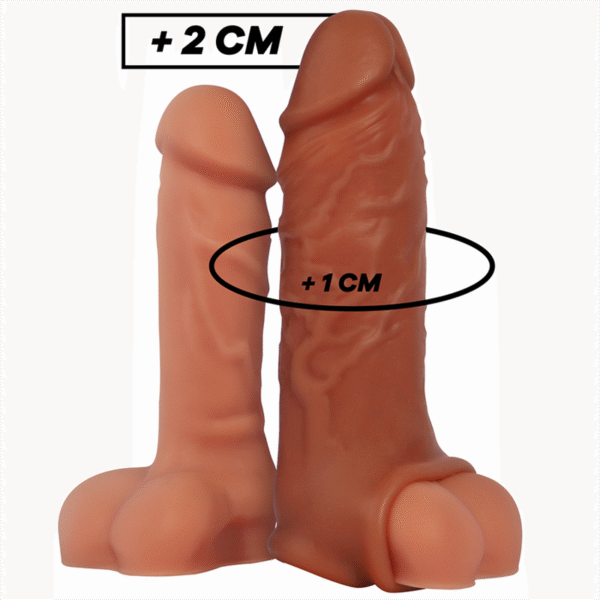 ¡Desliza la manga sobre tu erección y satisface todos sus deseos con tu nuevo tamaño aún más grueso! El material súper suave fabricado 100% en silicona médica, queda como una segunda piel o incluso mejor!