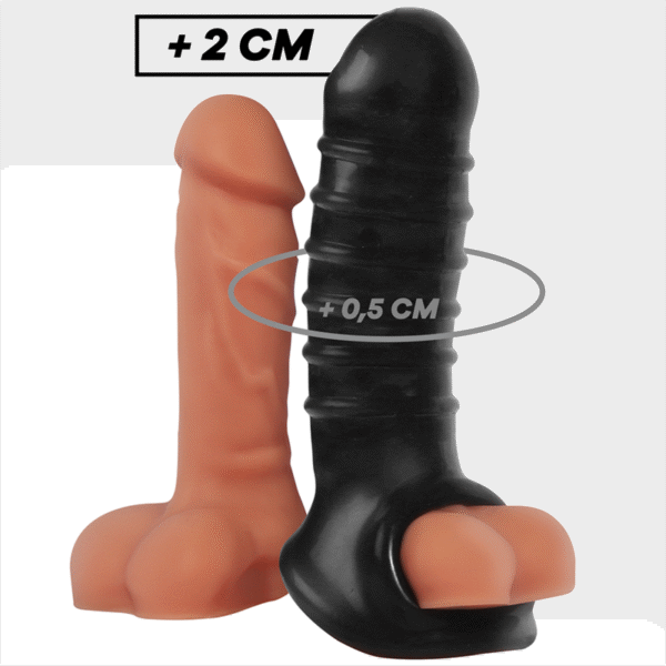 Cumple emocionantes fantasías cuando deslizas tu pene en la funda y tu escroto en la correa. Una vez que se asegure esta manga de extensión, tendrás más longitud y circunferencia para jugar con total sujeción.