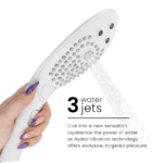 Forma ergonómica – Cabezal de ducha diseñado para un cómodo control con una sola mano para una estimulación del masaje de agua sin esfuerzo